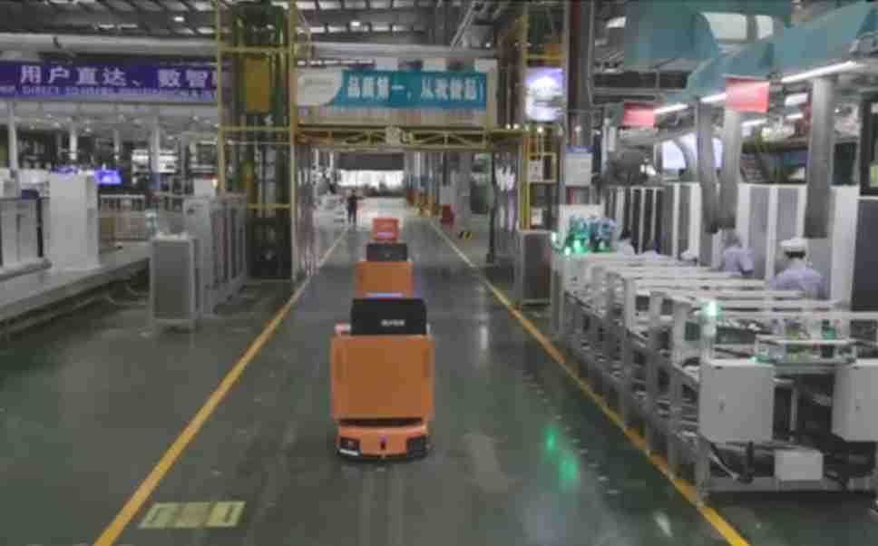 为车载冰箱物流配送打造的智能解决方案,,包含产中物流通过潜伏举升AMR搬运至线边,,产后成品物流智能仓储,,,流程包含产中物流智能齐套入库,,,线边安灯叫料AMR智能配送至线边,,,成品入库、、、、出库,,,通过无人堆高车机器人,,,智能仓储管理替代人工作业管理,,,,实现更高存储、、更高效率、、、、更具柔性化的解决方案。。。